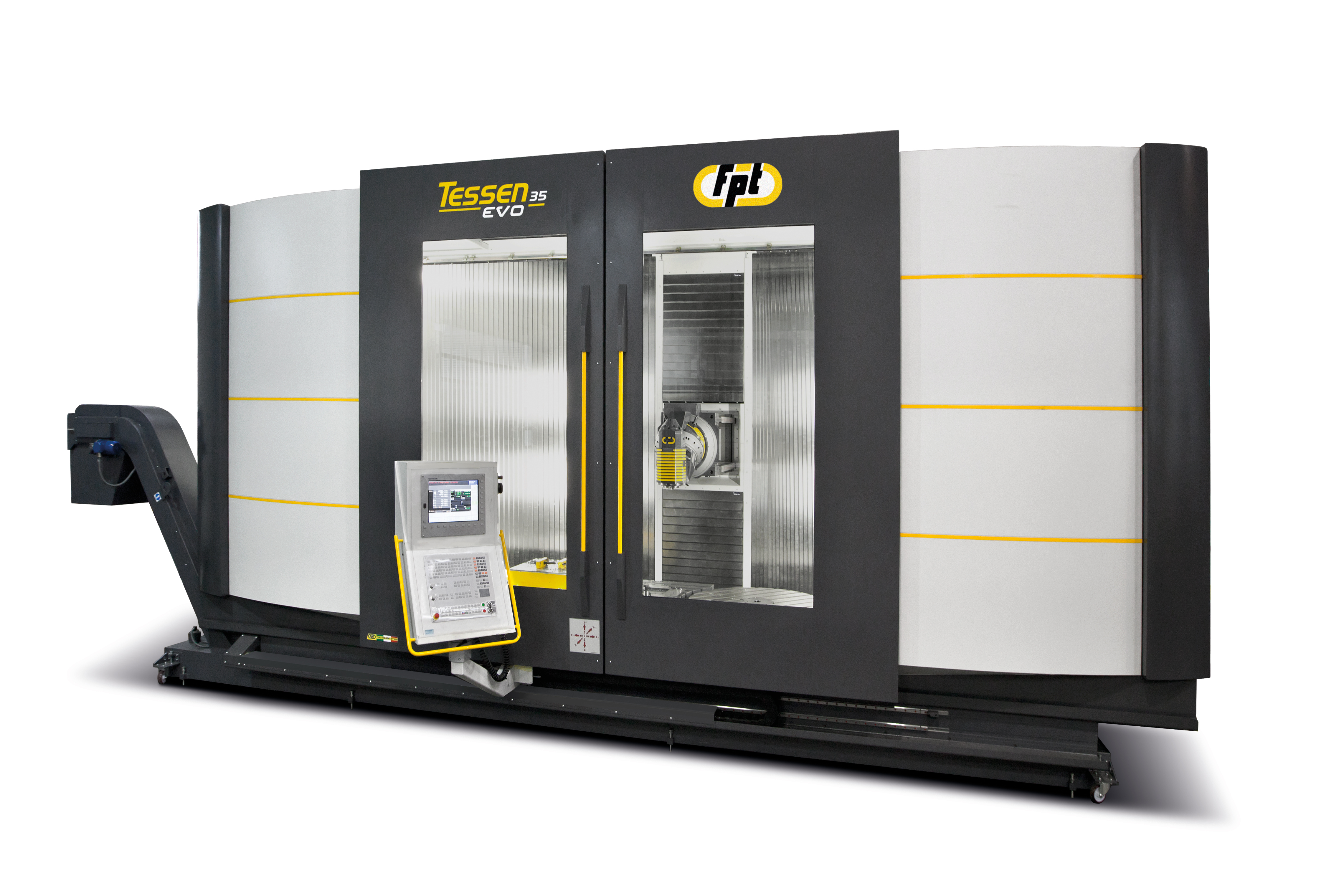 The FPT Tessen EVO is a next-generation horizontal milling machine designed around the proven fixed-table, moving-column concept. Building on the innovation of FPT’s Ronin and Verus series, Tessen EVO delivers unmatched rigidity, precision, and flexibility. Its oversized bed integrates the longitudinal sliding guideways directly with the floorplate, positioned on an inclined plane for maximum stiffness and stability. This unique structure ensures superior resistance to machining thrusts while allowing full exploitation of vertical and horizontal daylight for larger, more complex parts. Ideal for |