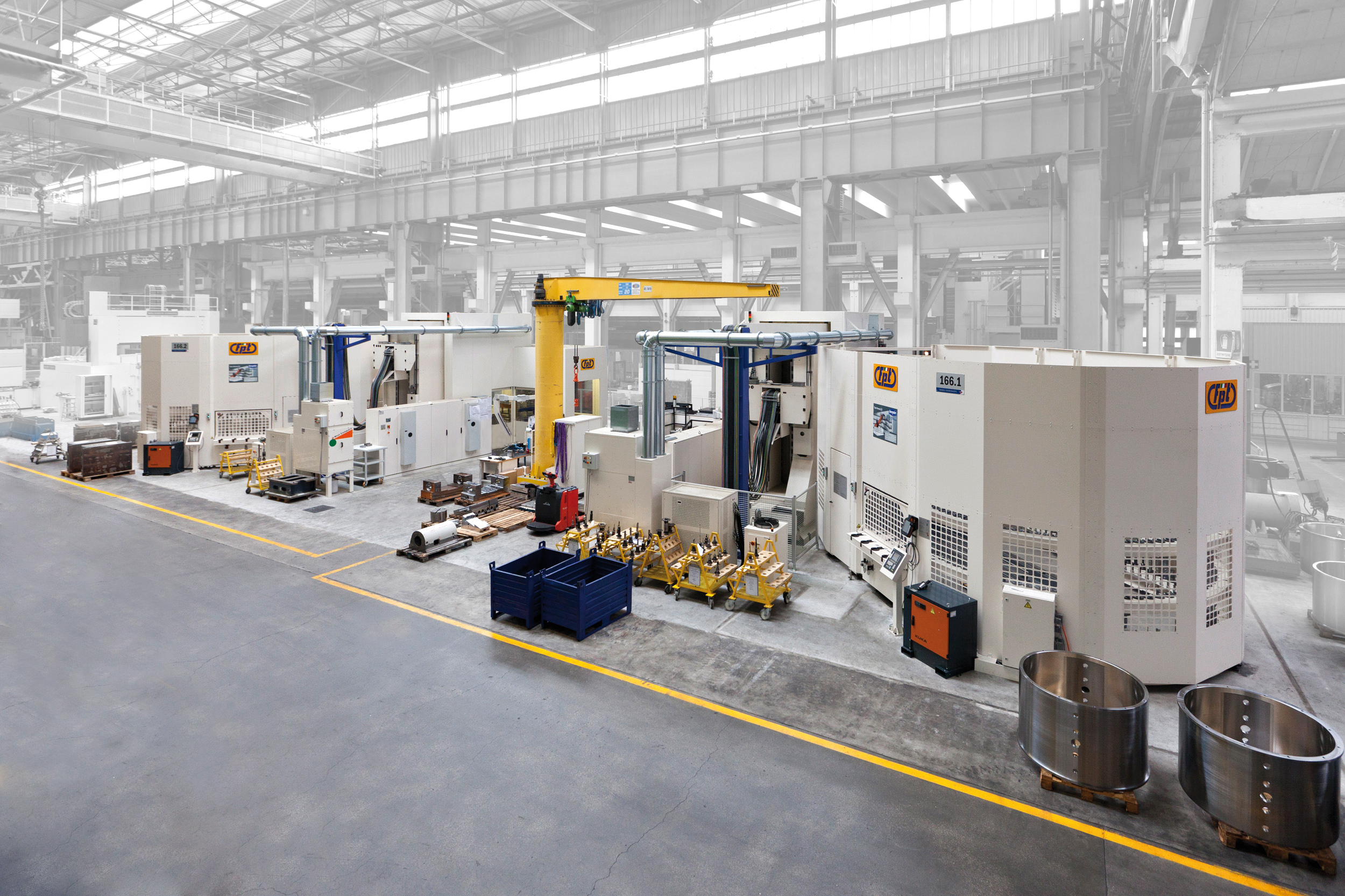 - Heavy-duty machining capacity: Hydrostatic rotary tables and monolithic design support very large, heavy components with stability.