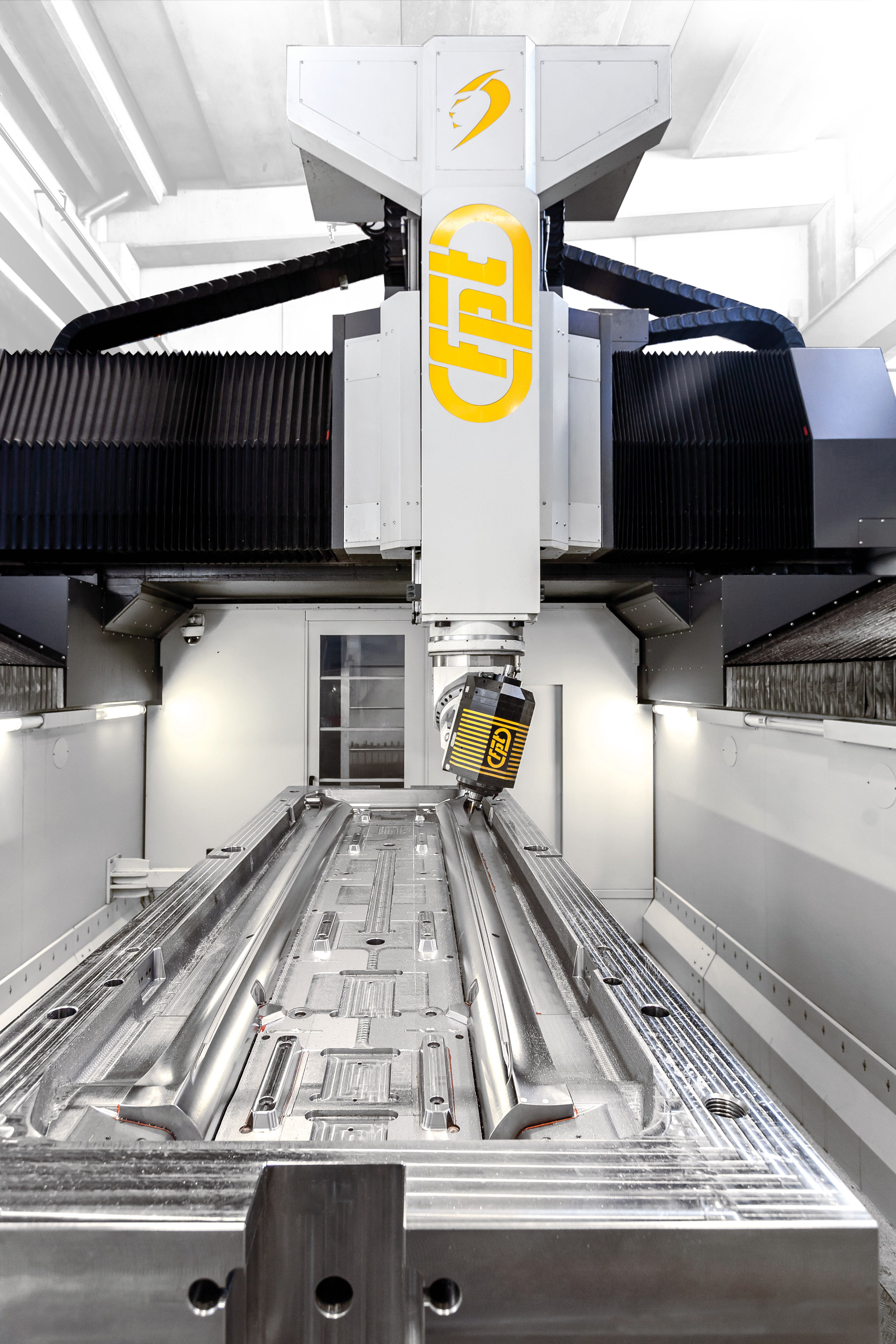The FPT Dinox 220 IAT is a high-performance vertical milling machine with a gantry-type moving crossbeam design, engineered for both heavy-duty roughing and high-speed finishing. Its structure, optimized through advanced FEM analysis, ensures maximum rigidity and vibration damping, while the integrated IAT – Intelligent Active Thermal control system guarantees precision by compensating for temperature variations during machining. Ideal For |