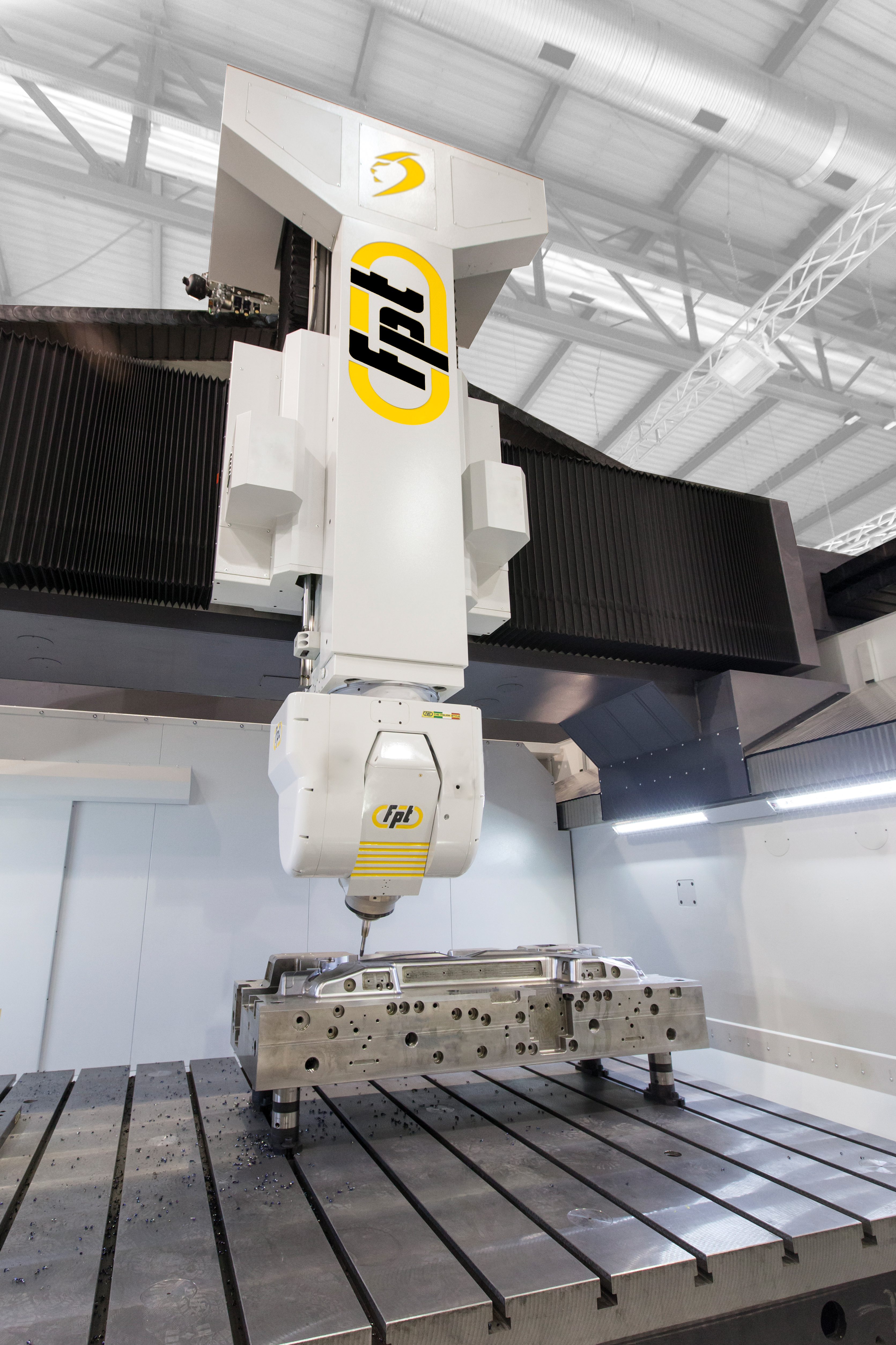 The FPT Dinox 350 IAT is a large-format vertical milling machine designed for 5-axis precision machining of oversized components. Featuring a gantry-type moving crossbeam architecture, the Dinox 350 IAT combines heavy-duty rigidity with high-speed performance, making it equally effective in roughing and finishing operations. Its IAT – Intelligent Active Thermal control system ensures dimensional stability by compensating for environmental and operational temperature variations. Ideal For |