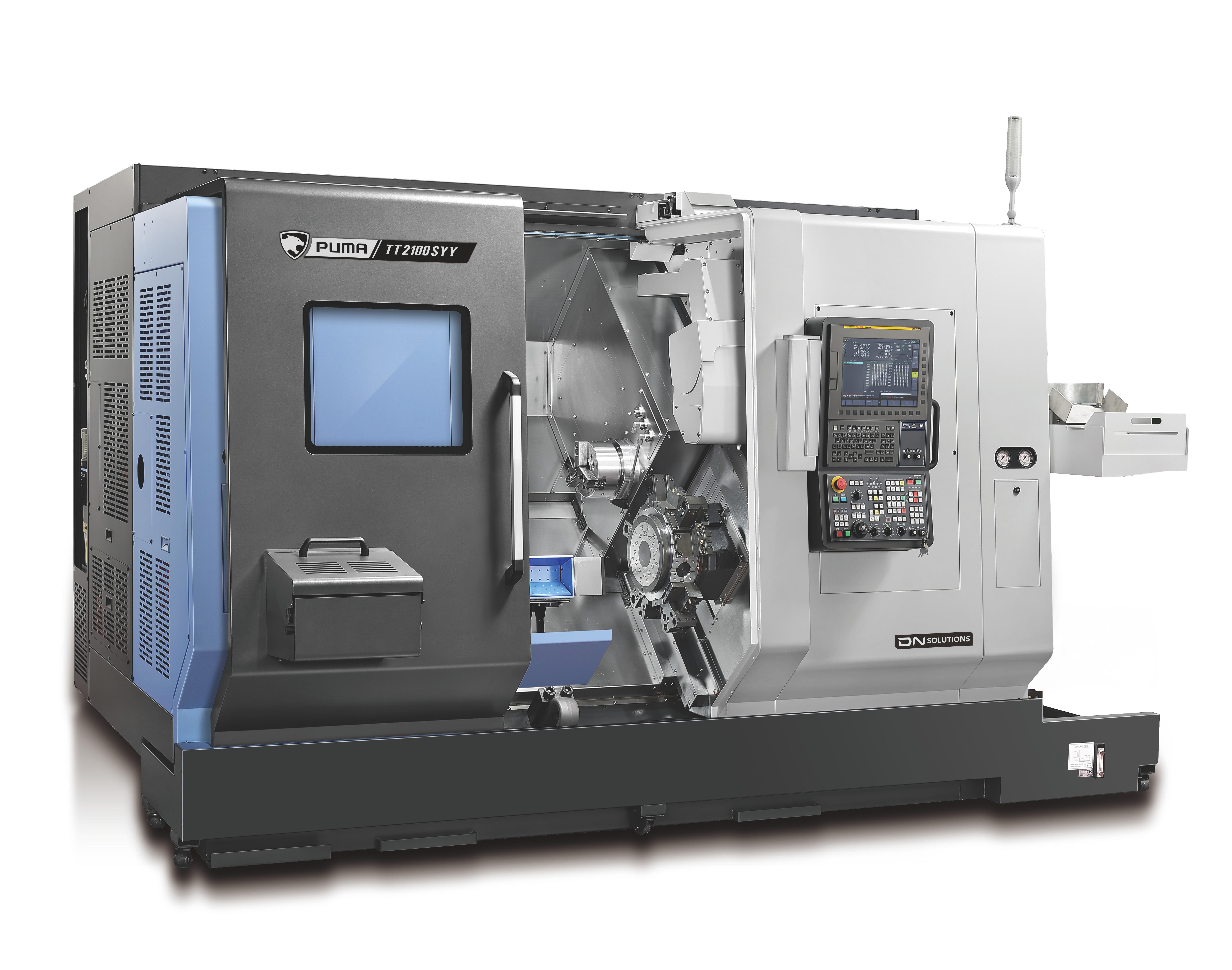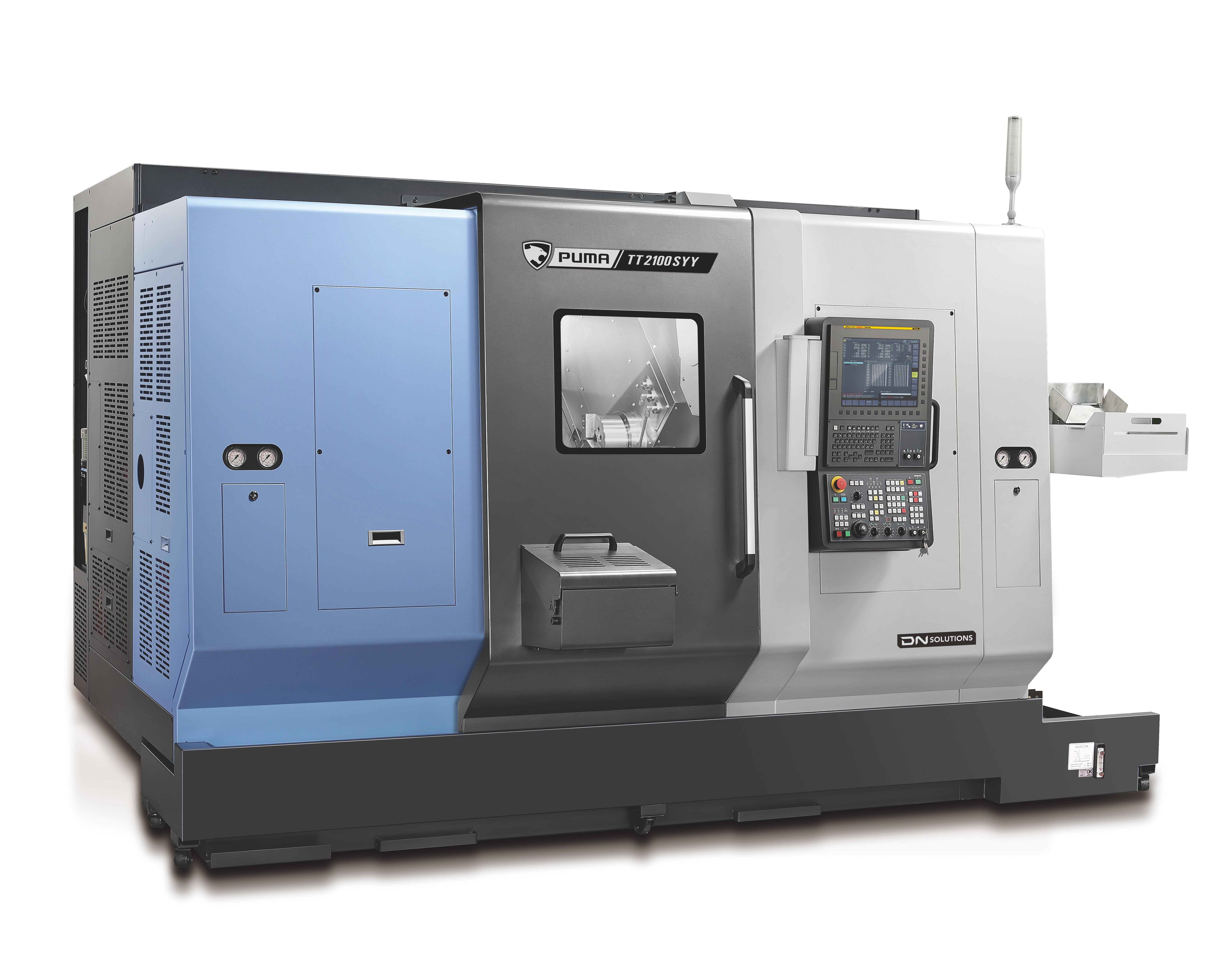 PUMA TT1300, TT1800, TT2100 un TT2500 sērijas ir augstas produktivitātes horizontālie virpošanas centri ar stieņa kapacitāti no 42 mm līdz 81 mm. Šīs virpas ir aprīkotas ar divām pretējām vārpstām un augšējām un apakšējām revolvergalvām un ar Y-ass funkcionalitāti, nodrošinot vienlaicīgu divu detaļu apstrādi. Abas vārpstas ir vienlīdz jaudīgas un nodrošina neatkarīgu darbību un automātisku detaļu izmešanu, kas būtiski uzlabo produktivitāti. PUMA TT sērija ir pazīstama globāli kā viena no labākajām veiktspējas un uzticamības ziņā, padarot to par vienu no DN Solutions vislabāk pārdotajiem produktiem. |