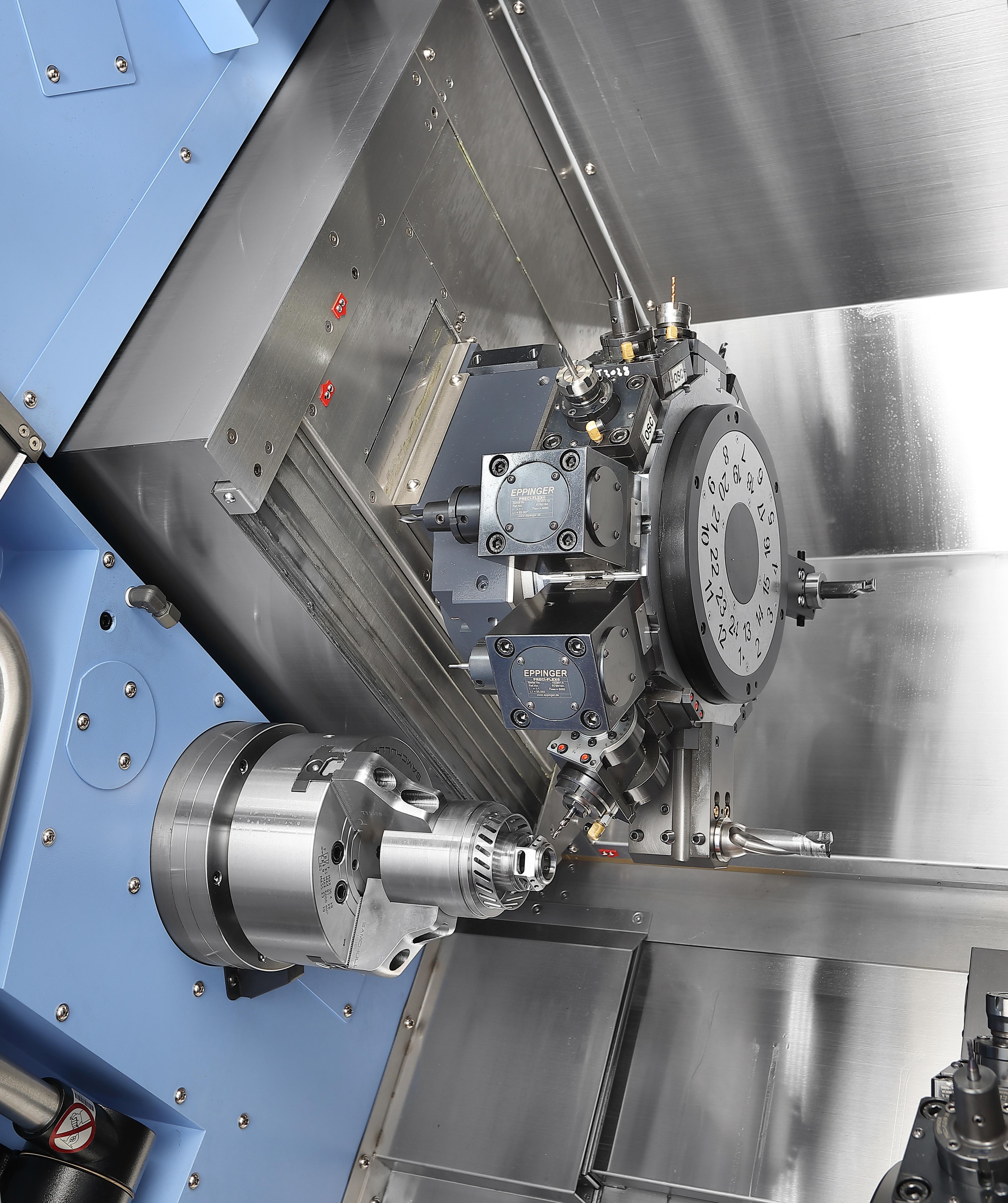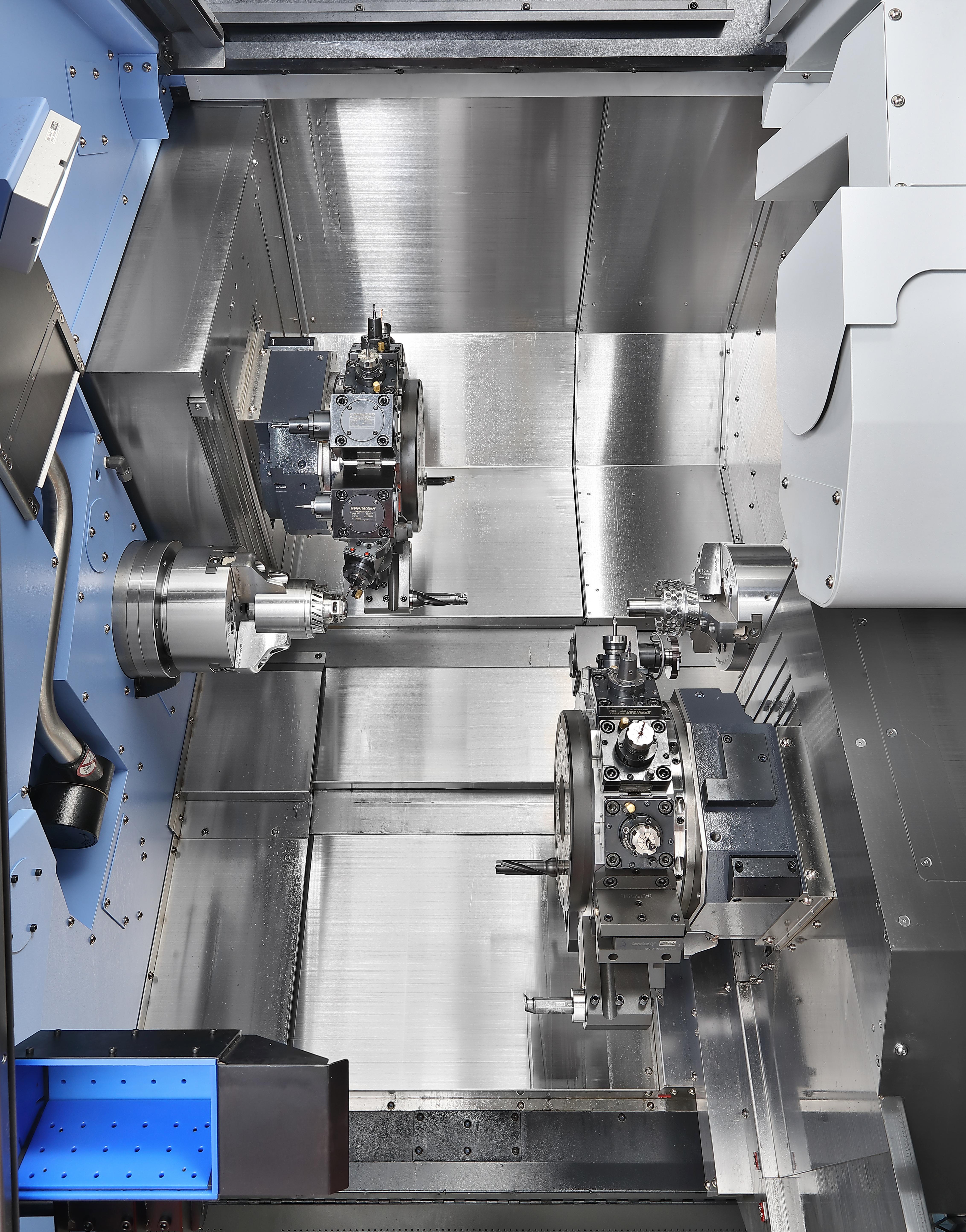 - Divu vārpstu efektivitāte: Divas pretējās vārpstas ar vienādu jaudu ļauj vienlaikus apstrādāt divas detaļas, būtiski palielinot produktivitāti.